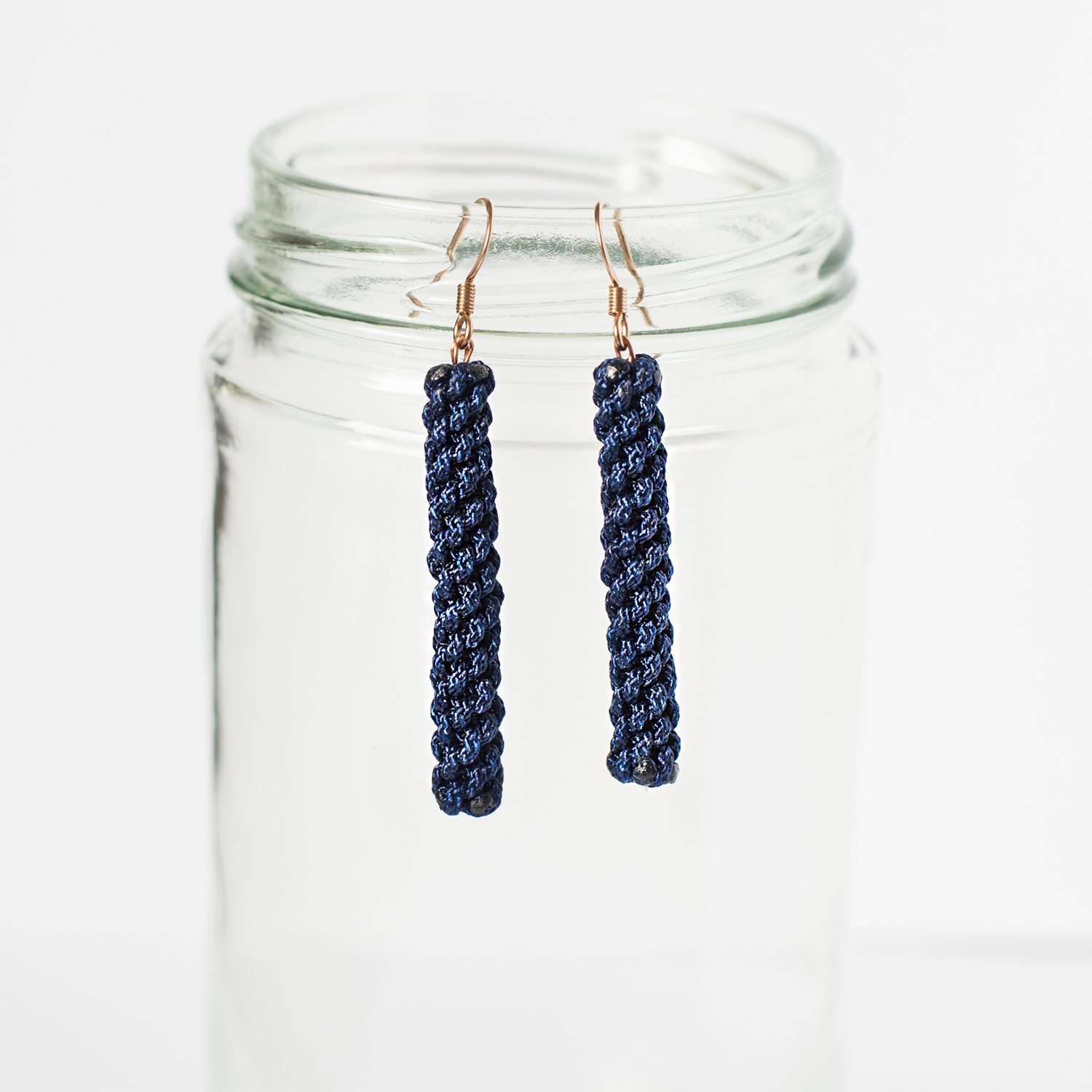 Each earring is hand crafted from rose gold plated metal and string purchased from our local merchant.